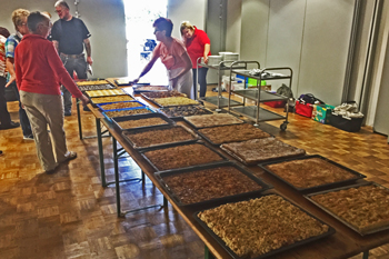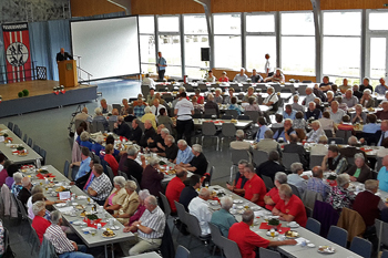Am Samstagmorgen ab 10.00 Uhr hatten sich wieder viele Helferinnen und Helfer in der Wesertalhalle eingefunden. Viele Kuchenbäckerinnen gaben ihren leckeren selbstgebackenen Kuchen ab. Hierfür unseren herzlichen Dank. In der Küche wurden fleißig Brote geschmiert, die dann mit dem Kuchen auf den vorbereiteten Tischen verteilt wurden. Die ersten Senioren aus dem Altkreis Hofgeismar und Reinhardshagen fanden sich gegen 13.00 Uhr ein und langsam füllte sich die Wesertalhalle.