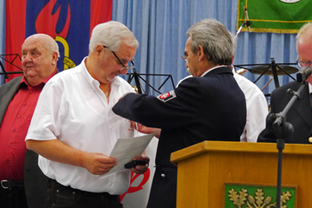 Anschließend erhielt Peter Jatho eine besondere Ehrung für seine langjährige Tätigkeit im Vorstand, ihm wurde die St. Florians-Medaille in Silber am Bande verliehen. Das war für ihn eine große Überraschung.