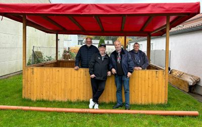 Unser Verein bekam eine Verkaufshütte vom Gesangsverein Veckerhagen geschenkt. Die Hütte des Gesangsvereins stand nun schon viele ungenutzte Jahre trocken in einer Halle. Da man aber auch zukünftig keine Verwendung für den Verkaufsstand sah, wurde an unseren Verein gedacht. Nachdem wir die Hütte vom Gesangsverein überreicht bekommen haben und sie zum ersten mal aufgebaut wurde, fehlte lediglich die Plane für das Dach. Peter Hagemann erklärte sich daraufhin sofort bereit ein großen Teil der Kosten für eine neue Dachplane zu Spenden.