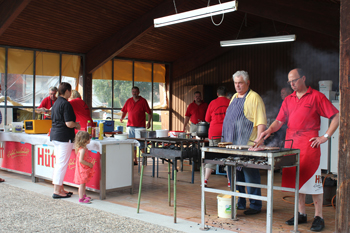 Samstagmorgen traf man sich nochmals, um die restlichen Arbeiten durchzuführen. So konnte dann ab 18.00 Uhr das Sommerfest im Ochsenkamp beginnen. Der Grill wurde angezündet, der Spießbraten vorbereitet und die Getränke waren gut gekühlt. Trotz der hochsommerlichen Temperaturen fanden sich viele Gäste ein. Jung und Alt machten regen Gebrauch, sich diesen Abend gut gehen zu lassen.