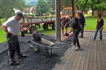 Mitglieder des Feuerwehrvereins Veckerhagen, der Einsatzabteilung und der Reservistenkameradschaft Reinhardshagen trafen sich am Samstag 27. Juni 2015 um den gemeindlichen Ochsenkamp auf das Sommerfest 2015 vorzubereiten. Es wurden unter anderem einige schadhafte Bretter des Fußboden entfernt, die Gehwegplatten mit Hochdruckreinigern von Moos und Dreck befreit und eine Wand bekam durch unsere fleißigen Maler/in einen neuen Anstrich . Die Lücken der fehlenden Bretter wurde mit Splitt aufgefüllt welcher von der Gemeinde bereitgestellt war. Im Anschluss nach der zum teil sehr anstrengenden Arbeit setzten sich alle bei einem kühlen Getränk und frisch gegrillter Bratwurst noch zusammen. Peter Jatho bedankte sich für die Unterstützung bei allen Helferinnen und Helfern.