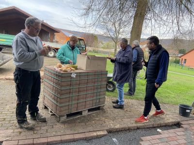 Für Freitag den 14. April rief der Vorstand seine Mitglieder zur Hilfe auf, beim Vorhaben den schadhaften Holzboden gegen Pflastersteine unter der Pergola im Ochsenkamp zu tauschen. Es musste der alte Holzboden komplett entfernt werden, Splitt eingebracht und Pflastersteine verlegt werden. Das Material so wie das Arbeitsgerät stellte die Gemeinde. Dank vieler fleißiger Helfer und Helferinnen konnte am Samstagnachmittag schon ein sehr gutes Vorannkommen der Arbeiten verzeichnet werden. Am Freitag den 21.4. ging es dann weiter und der komplette Einsatz wurde schliesslich nach erstaunlichen 3 Tagen bewältigt. Gut ein paar finale Kleinigkeiten sind noch zu machen, die wird der Vorstand in der nächsten Woche aber noch erledigen.
