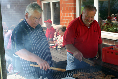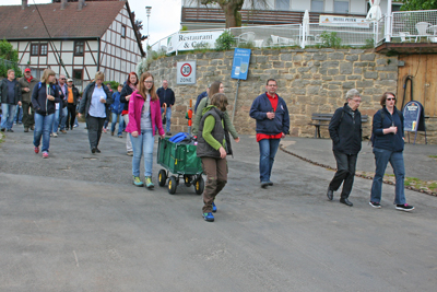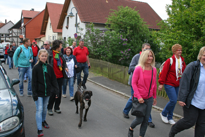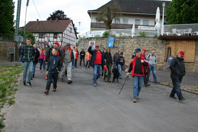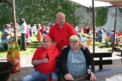 Feuerwehrverein Veckerhagen e.V. Himmelfahrtswanderung 2015 In diesem Jahr hatte der Wettergott ein Einsehen mit uns, und so starteten wir um 9,30 Uhr von der Fähre aus zur Bramburg. Es hatten sich wieder viele Mitglieder mit ihren Familien angemeldet. Die Wanderung führte uns durch das Feld zum Parkplatz Bramburg und von hier weiter zur Burg. Unterwegs wurden wir wieder in der bekannten Art von Peter Jatho und Peter Rettberg vorzüglich mit Getränken versorgt. An der Bramburg angekommen wurde die mitgebrachte Brotzeit verzehrt. Die Reste der Bramburg war für viele Teilnehmer wieder mal ein Highlight, da die meisten diese Burg nur von Schulausflügen in Erinnerung hatten. Anschließend machten wir uns wieder auf den Heimweg. Am Campingplatz wurden wir wieder von unserem Versorgungswagen erwartet. So gestärkt brachen wir zur Fähre auf. Von hier ging es dann weiter zur Feuerwache, wo wir schon von den Nichtwanderern erwartet wurden. Der Grill war schon im Gang und so konnten wir uns mit Bratwurst und Steaks sowie Salaten stärken. Fleißige Helferinnen sorgten für Waffeln und Kaffee, so dass für jeden Geschmack etwas dabei war. Herzlich bedanken möchte sich der Vorstand bei allen fleißigen Helfern, für die Salatspenden und das Waffeln backen. Diese Himmelfahrtswanderung war wieder eine gelungene Veranstaltung unseres Vereins. |