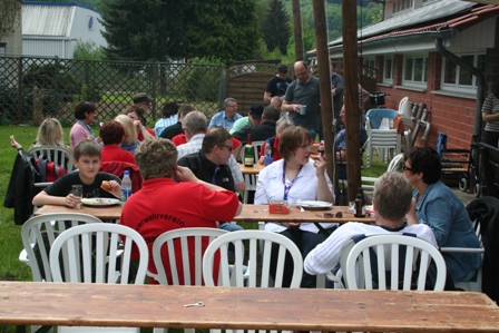 In der Feuerwache wurden wir von den Nichtwanderern erwartet. Der Grill war schon im Gang und so konnten wir uns mit Grillspeisen und Salaten stärken. Fleißige Helferinnen sorgten für Waffeln und Kaffee.
