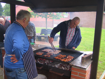 Gutgelaunt in der Feuerwache angekommen wurden wir von den “Nichtwanderern” erwartet. Wir konnten uns sofort mit leckerer Bratwurst und saftigen Steaks vom Grill sowie Salaten stärken. Fleißige Helferinnen hatten Kuchen spendiert und es wurde für Kaffee gesorgt. Anschließend saßen alle noch in gemütlicher Runde beisammen und ließen den Tag ausklingen. Es war wieder eine wirklich gelungene Himmelfahrtswanderung.