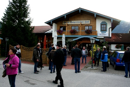 Am Mittwochabend wurden schon viele Koffer an der Feuerwache abgegeben, so dass wir am Donnerstag um 7.00 Uhr pünktlich mit 50 Personen abfahren konnten. Das obligatorische Feuerwehrfrühstück wurde auf einer Raststätte in der Rhön verzehrt. Die Stimmung im Bus war von der ersten Minute an sensationell und so kam man gut gelaunt im Musikhotel Bayerischer Hof in Inzell an. Hier wurden die Zimmer bzw. Appartements belegt. Nachdem die Koffer ausgepackt waren traf man sich zum Abendessen, welches in Büfett-Form aufgestellt war. Am Abend spielten zwei Musikanten zum Tanz auf, und sorgten für einen unterhaltsamen Ausklang eines Reisetages.